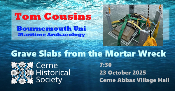 The next meeting of the Society will be at Cerne Village Hall at 7.30pm on Thursday the 28th March when David Beardsley will give a talk entitled